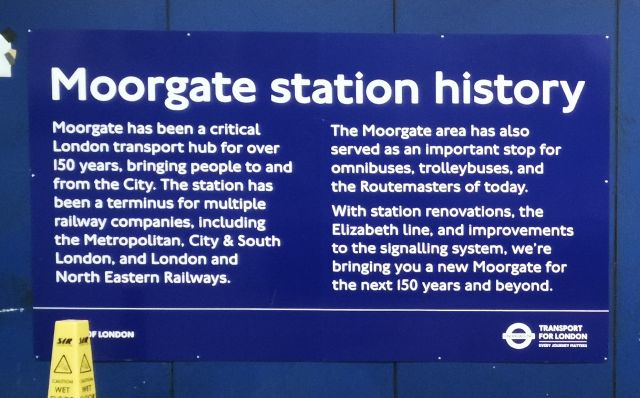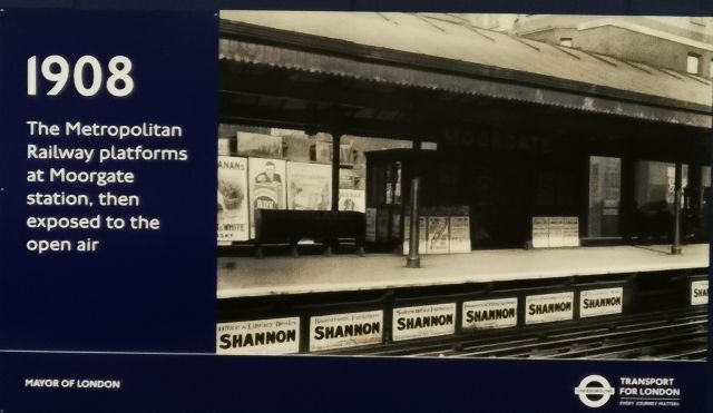The name came area that took its name from the Moorfields, a spot on the north of the wall. This station was the terminus of the first-ever extension on Metropolitan Railway from the original terminus at Farringdon. From posters on the station, I learn that Moorgate was a terminus for a few railways and a major hub for Omnibuses and trolleybuses.